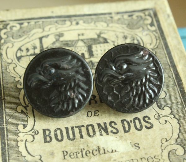 > 即決 イーグルヘッド メタルボタン 2個 φ16mm 動物 鷲 アニマル ハンティング 狩猟 フランス輸入 ヴィンテージ