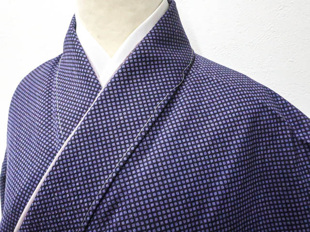 > 《京都一輝堂》リサイクル着物 紬 二部式 重ね衿付き 菱繋ぎ模様 しつけ付 未使用品 身丈約52.5cm 裄丈約62cm sok7z06-16