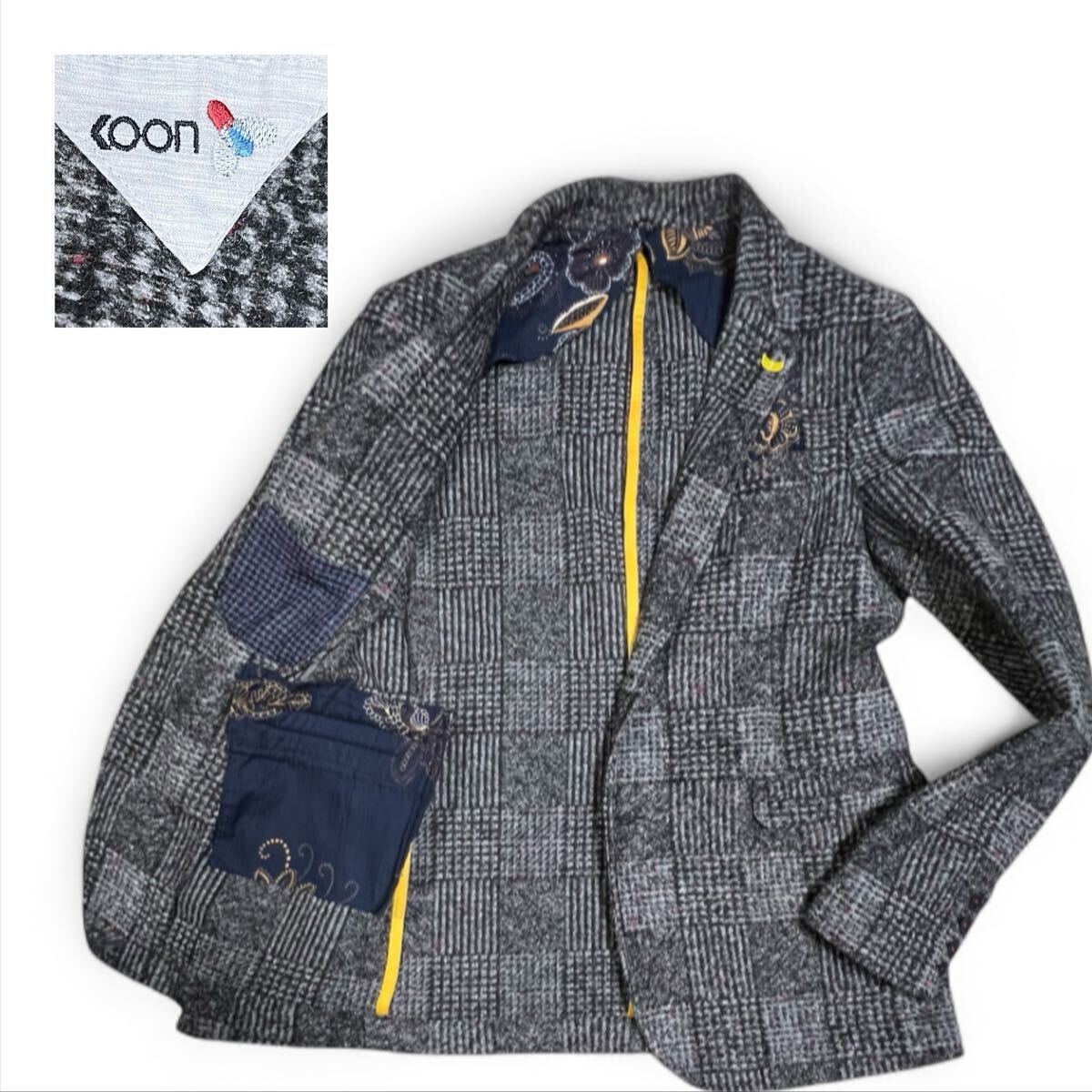 > 定価49,500円KOON/クーン/イタリア製/袖本切羽/ストレッチ ジャージーニットジャケット/テーラードジャケット48/ポケットチーフ付き