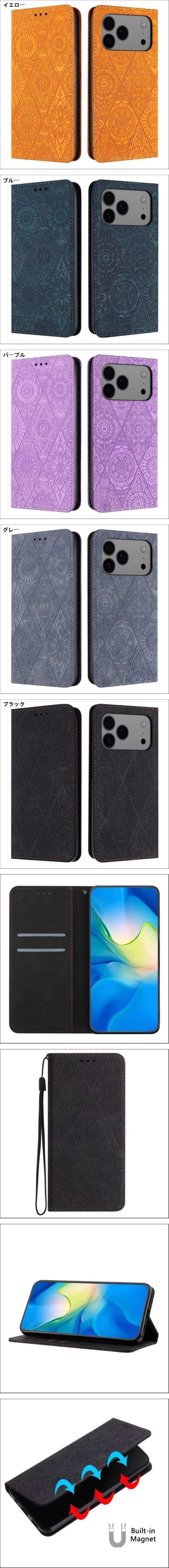 > iPhone17 Pro Max (6.9インチ) 用 ケース 古花デザイン 強磁吸着 カード収納 スタンド機能付き 手帳型 保護カバー