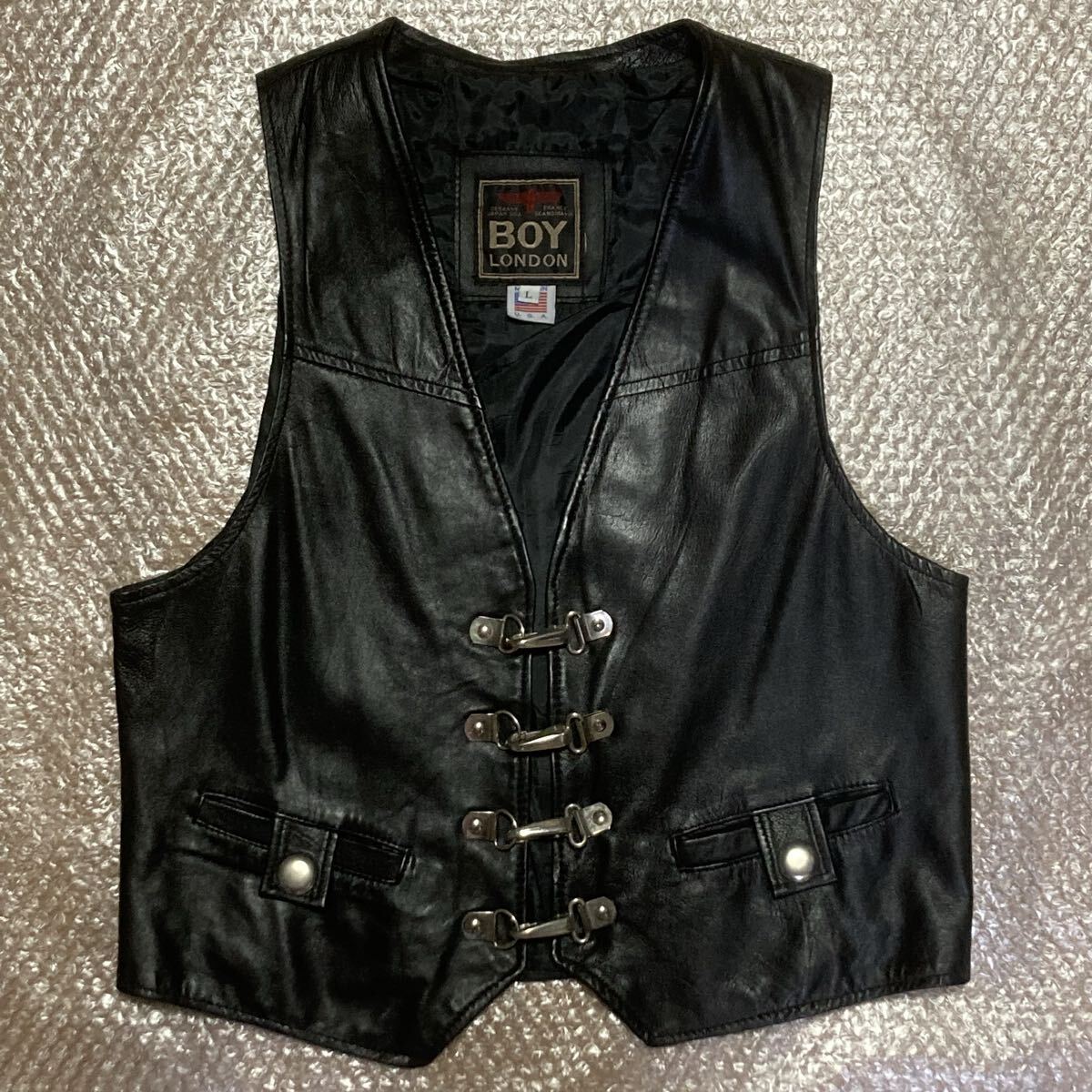 > ★超美品! USA製 BOY LONDON バックル留めレザーベスト sizeL ボーイロンドン ビンテージ パンク ハードコア フック式 ジレ サイドレース