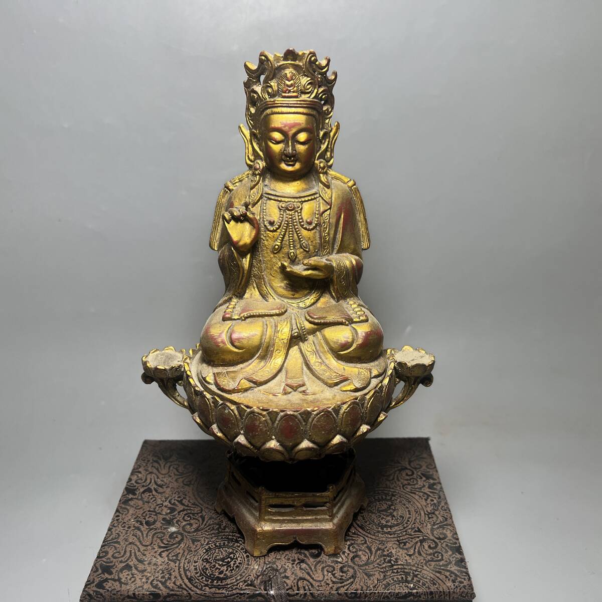 - 旧家蔵出し 銅製細作 塗金 釋迦牟尼像 蓮花座 仏像 香炉 熏香炉 香道具 仏具 仏教 逸品仏具 極細工 置物擺件 美術品 旧家蔵出 旧家供養品