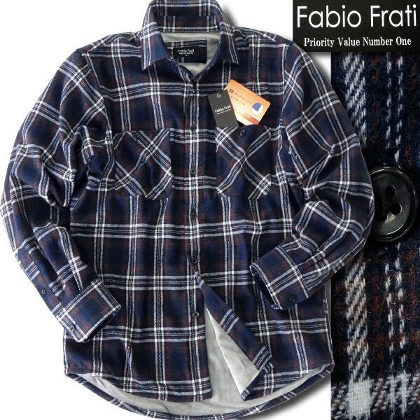 - 新品 ファビオフラーティ 裏ベロア フランネル シャツ ジャケット LL 紺茶白 【FF8W-B481_NA_LL】 FABIO FRATI 秋冬 CPO ブルゾン アウター
