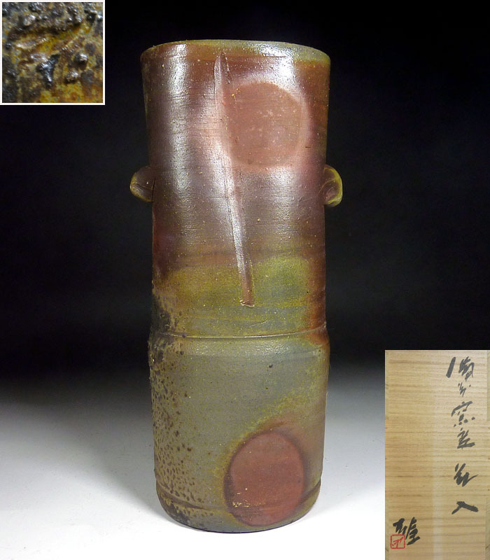 - 【陶酔】 人間国宝・藤原 雄 備前窯変花入 製作年号入り