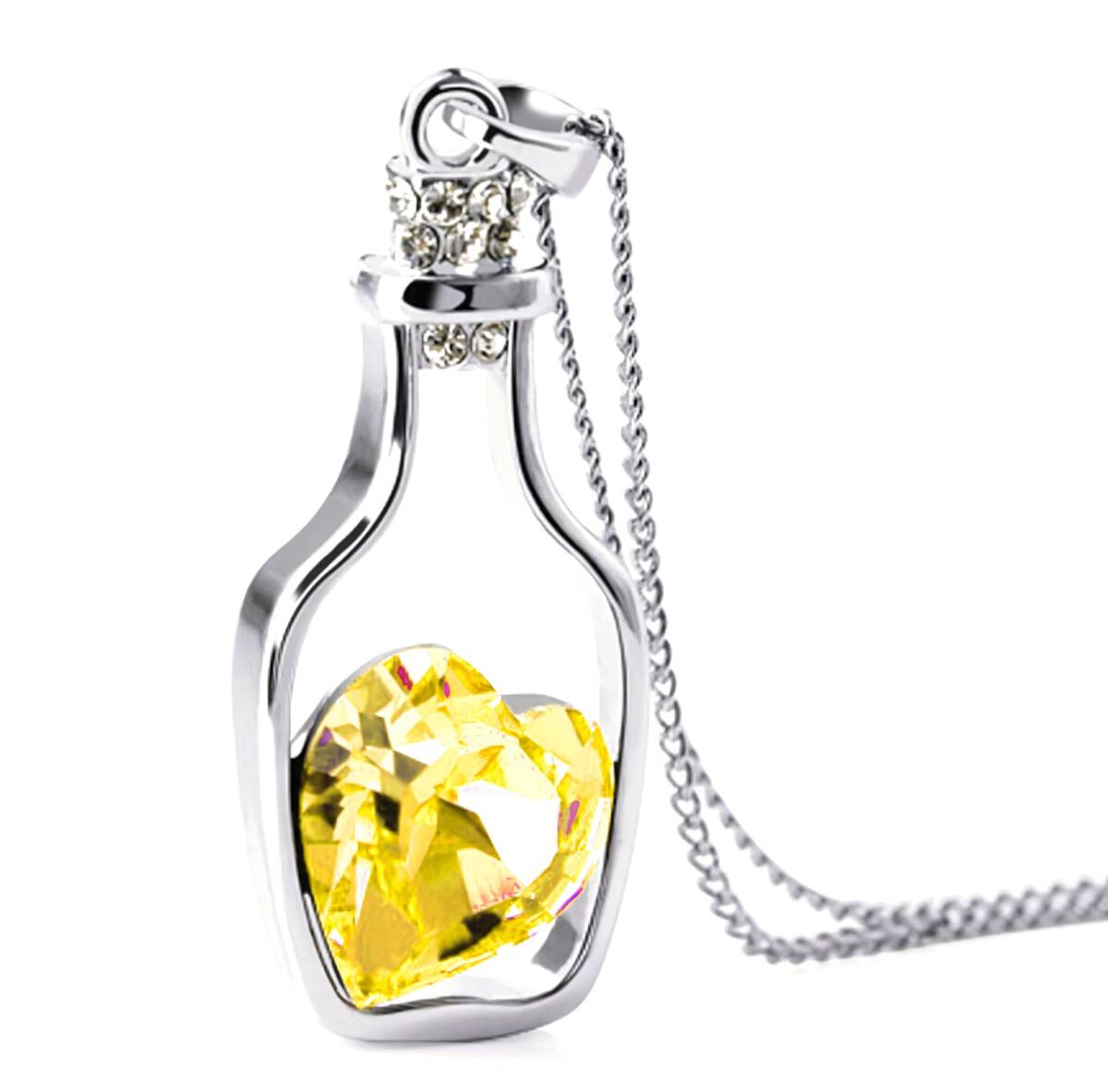 - 新品1円~★送料無料★黄金シトリン メッセージ小瓶ハート プラチナ仕上925シルバーネックレス誕生日プレゼント旅行秋祭連休ギフト国内発送
