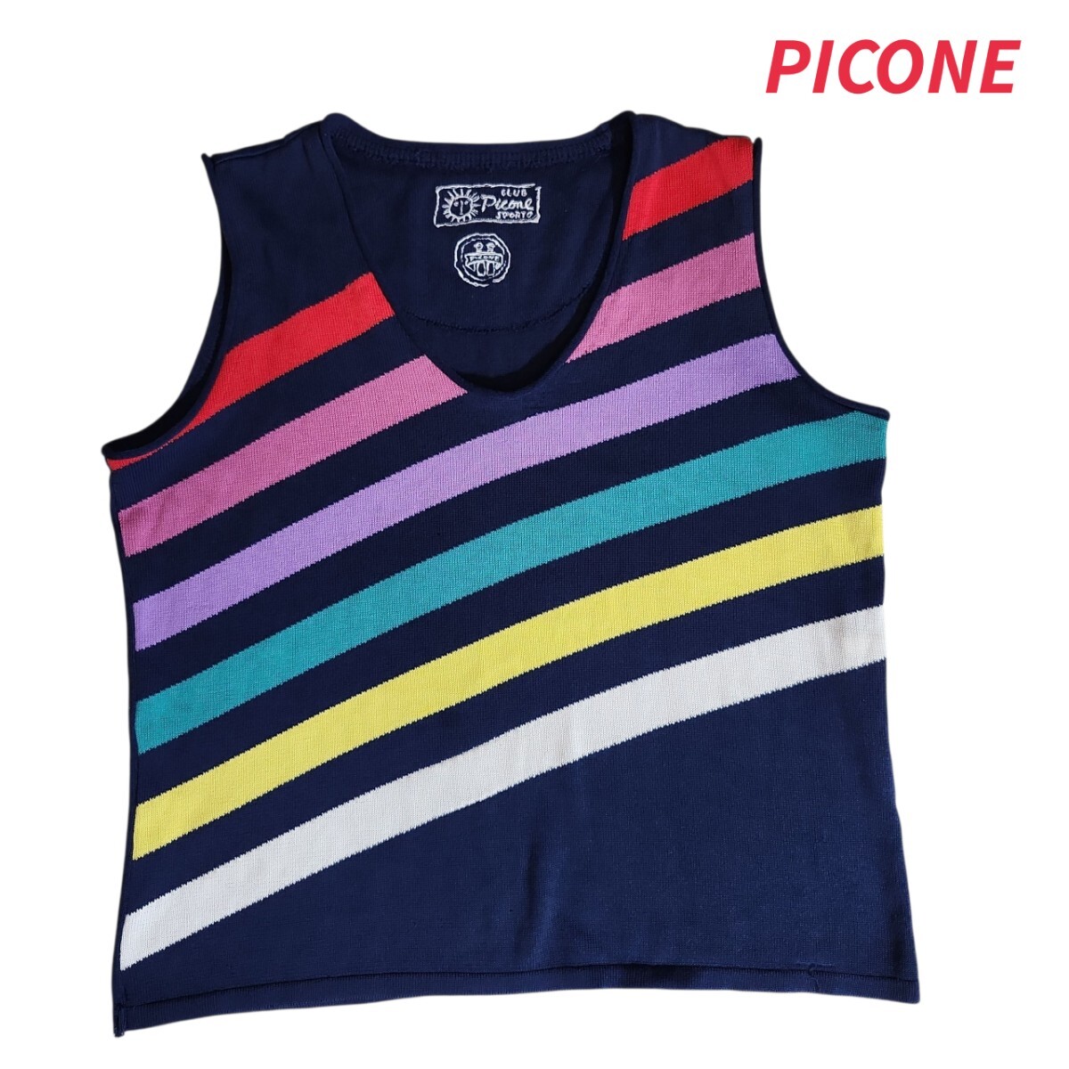 - PICONE マルチカラー コットンニット ベストネイビー 表記サイズ2 M 斜めストライプ