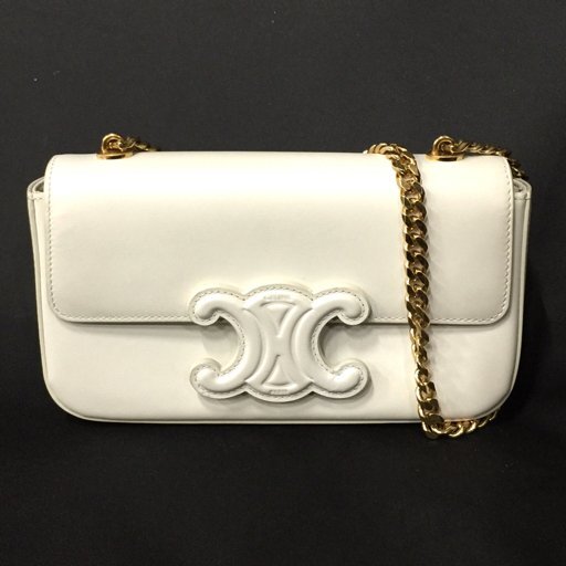 - セリーヌ トリオンフ フラップ チェーン ショルダーバッグ 肩掛け レザー レディース ホワイト系 CELINE
