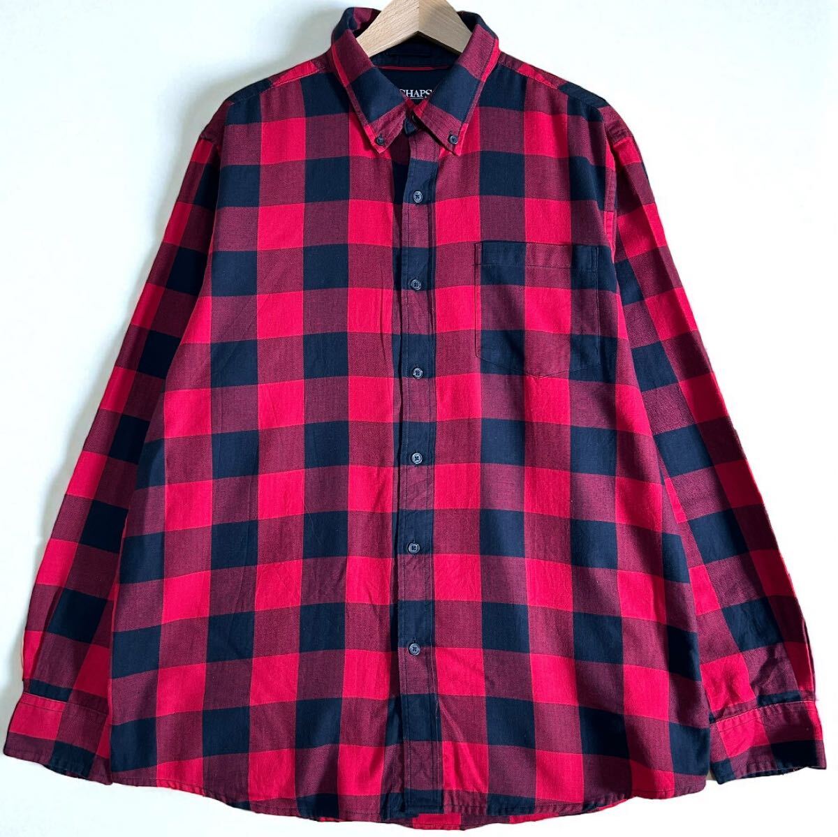 > CHAPS チャップス チェック柄 長袖 ボタンダウンシャツ バッファローチェック ヘリンボーン レッド ブラック メンズ XL 古着 ヴィンテージ