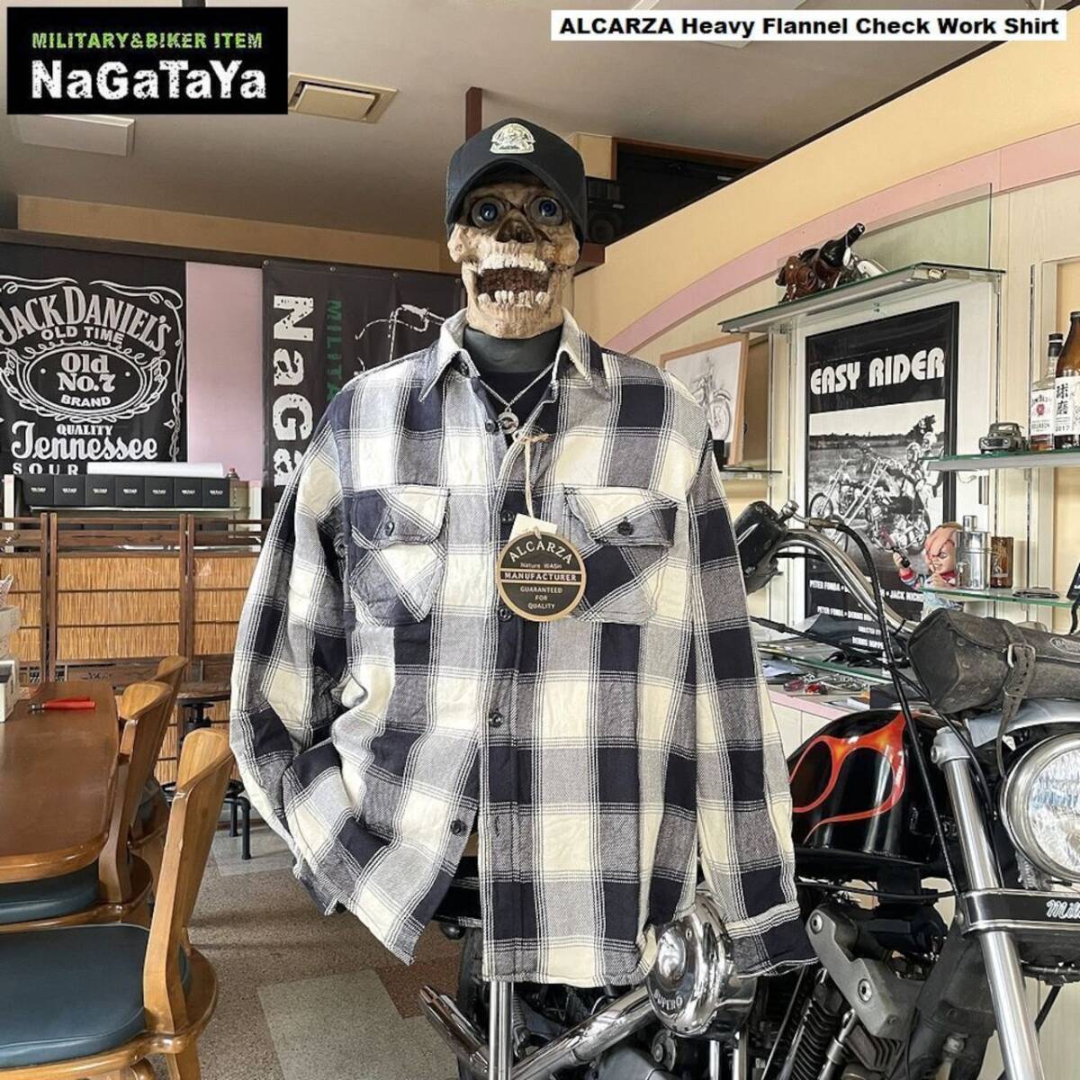 > ALCARZA アルカーザ ヘビーネルチェック ワークシャツ オンブレチェック柄 黒×白 XLサイズ アメカジ バイカー ストリート アウトドア