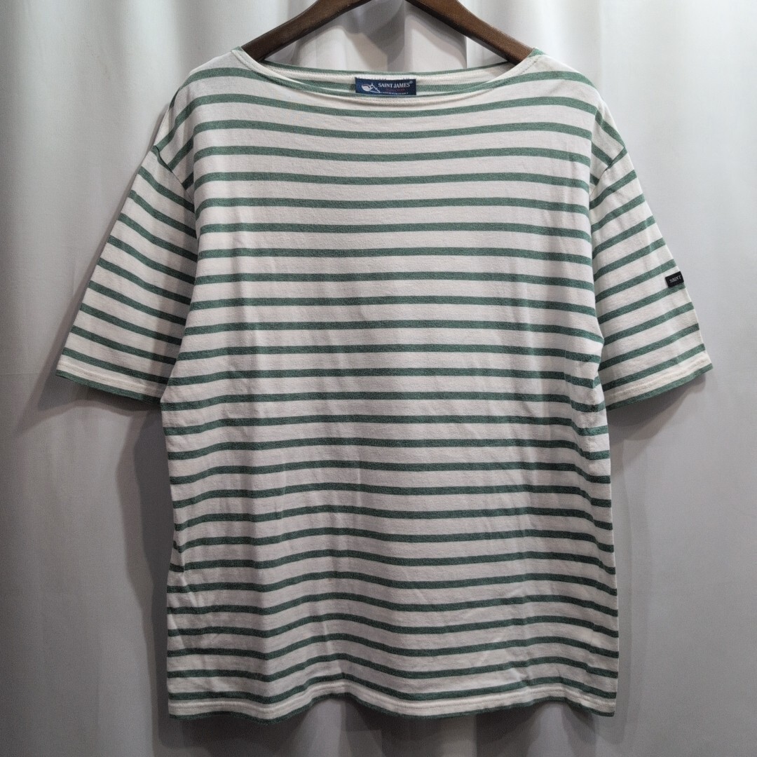 - [送料420円]SAINT JAMES セントジェームス【size:5】ボーダー 半袖Tシャツ 白 緑 メンズ 半袖シャツ バスクシャツ フランス製/オーシバル