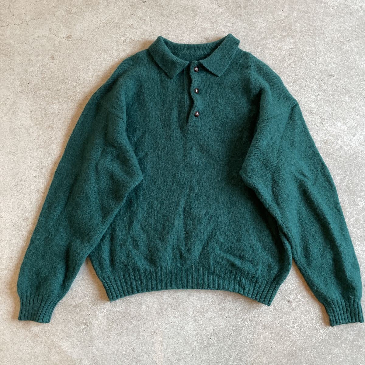 - ビンテージ イタリア製 アルパカ ウール ニットポロ 5ヴィンテージ グリーン メンズ レディース セーター ヨーロッパ古着 ユーロ xlサイズ