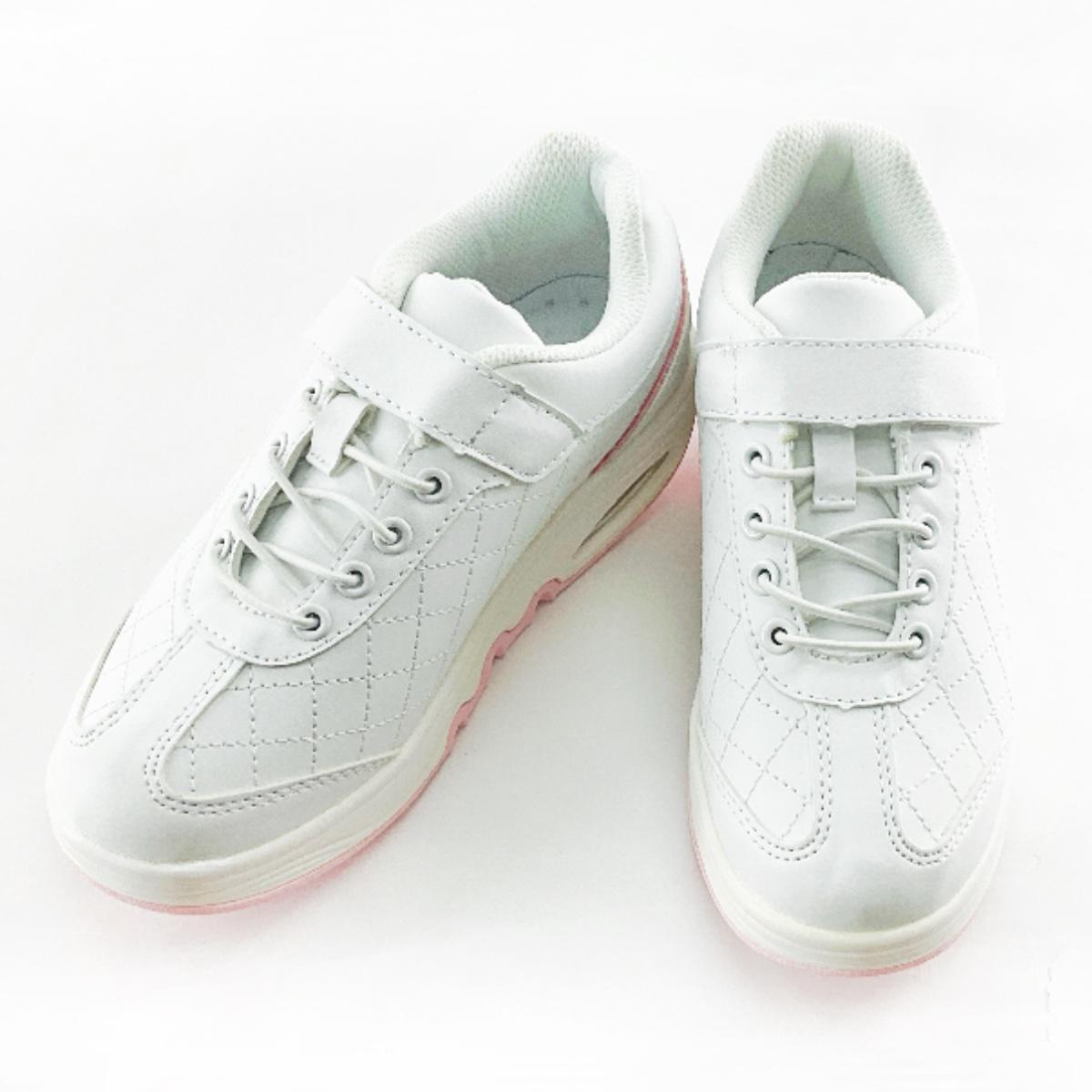 - 訳あり 舟底キルティング らくらくステップシューズ 看護師 介護士 Sサイズ 22.0~22.5cm ホワイトxピンク