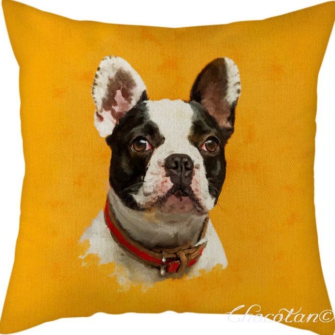 > 【送料無料】フレンチブルドッグ イラスト U コットンリネン 45x45cm クッションカバー【 新品】