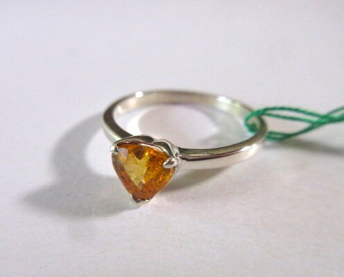 明るいオレンジ色のハート形スペサルティン・ガーネットです。インクルージョンがありますが、透明感とテリがあります。非加熱。