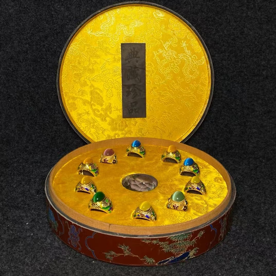 - 清時代 宮廷御蔵 神龍漆器 寶盒藏 猫眼石指輪 寶石 手彫り 古玉 箱有 極細工 古置物 古美術 古賞物 古董品 時代物 旧家蔵出 中国唐物927