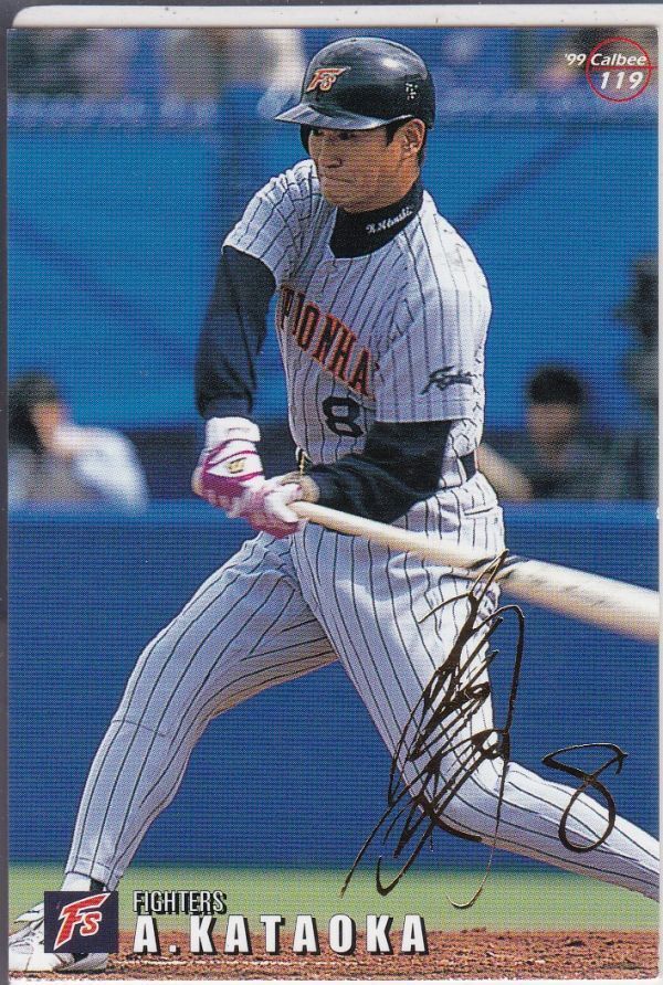 - ●1999カルビー【片岡 篤史】プレ版:金箔押サインパラレル No.119:日本ハム R2