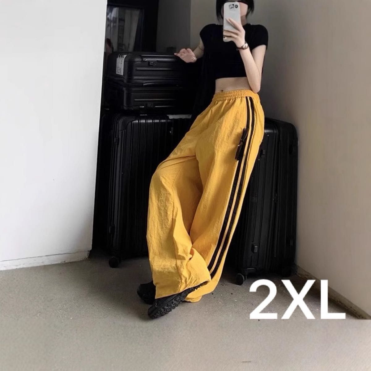 - 韓国風 サイドライン パンツ ジャージ ナイロン トラック パラシュート イエロー Y2K