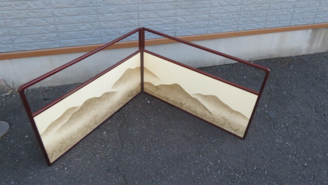 - 茶道具 風炉先屏風 利休梅 二ッ折 両面連山
