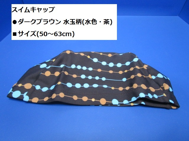 > ★送料無料【新品】スイムキャップ●ダークブラウン 水玉柄(水色・茶)■サイズ(50~63cm)■スイミング 水泳帽 ツーウェイ素材