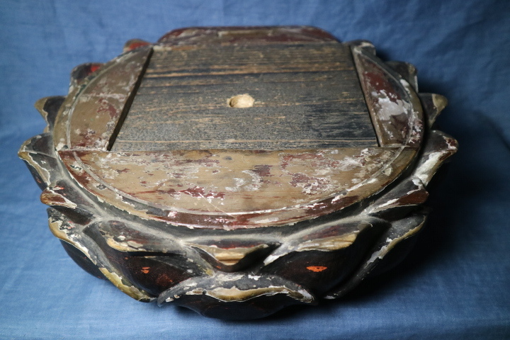 - 木彫 蓮弁台 35cm 検仏教美術仏像阿弥陀如来観世音菩薩珍品希少骨董オブジェ時代古寺