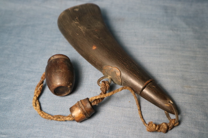 - 提げ物 火薬入 牛 角 根付 木彫 検武具マタギ古道具古民具珍品希少骨董オブジェ時代