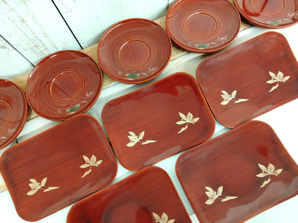 - *茶托 銘々皿 茶道具 *木製 漆塗 朱塗 *10点まとめ *ケーキ皿 菓子皿 茶器 食器
