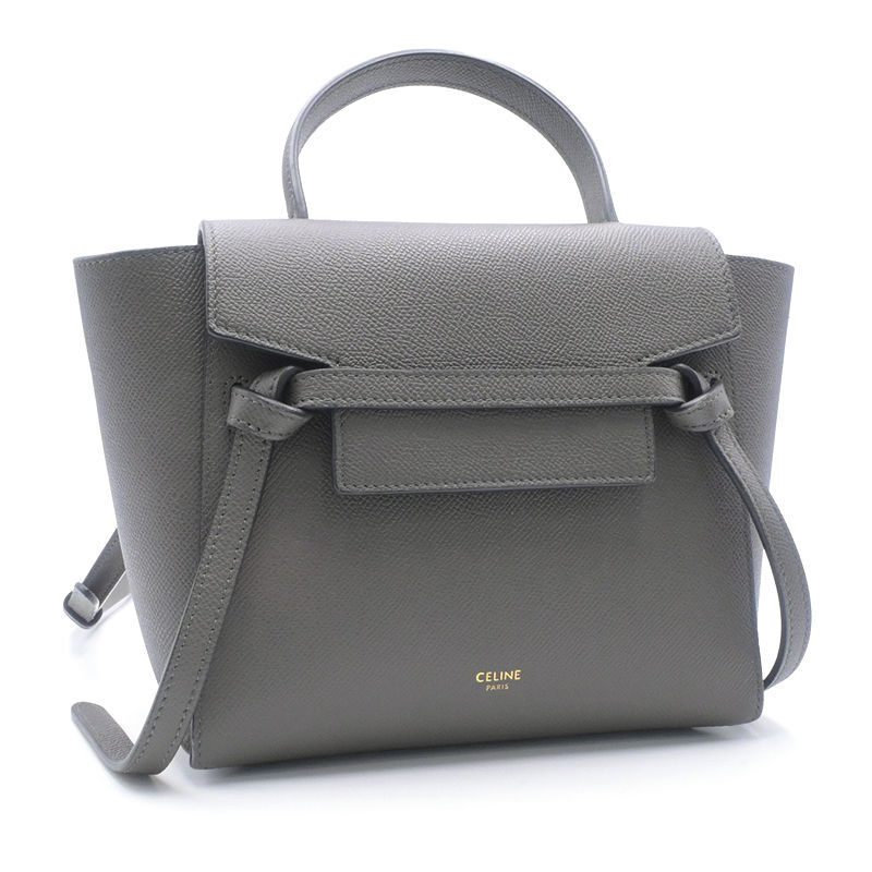 - セリーヌ ベルトバッグナノ 189003ZVA.10DC カーフスキン グレー ショルダーバッグ ハンドバッグ 肩掛けバッグ 灰色 中古 送料無料