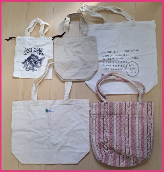 > 【送料無料:5点:エコバック 手提げ袋】★ピンク系・白系:38x34/35x43/40x39cm:マチ付き:収納袋:折り畳み:トートバッグ:おしゃれ:お得橋本