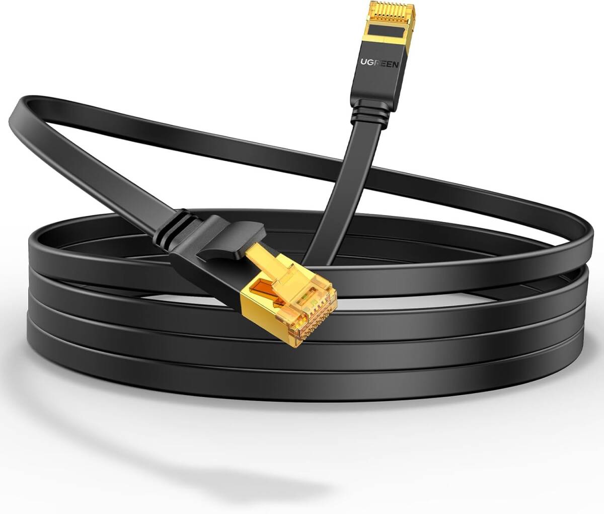 - UGREEN LANケーブル 10M CAT7 フラット 10Gbps/600MHz カテゴリー7 CAT7準拠 RJ45 金メッキコネクタ STP 爪折れ防止 高速