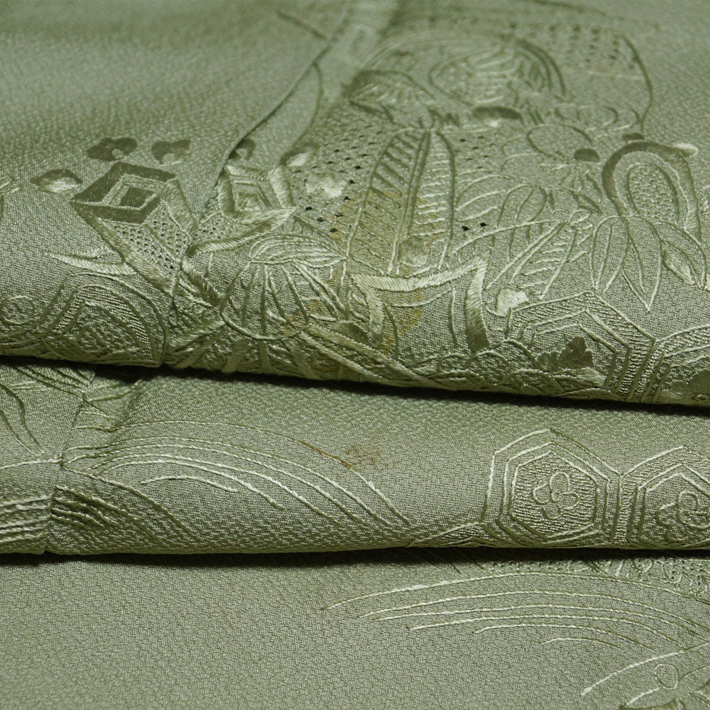 > 訪問着 蘇州刺繍 スワトウ刺繍 宝船・宝尽くし模様 五三の桐紋 Sサイズ 刺繍 中古 リサイクル着物 正絹 和服 天陽