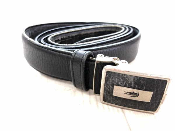 - ラコステ LACOSTE レトロ オールド クラシック トラッド ロゴ入り スクエアバックル 本革 レザー ベルト メンズ 黒