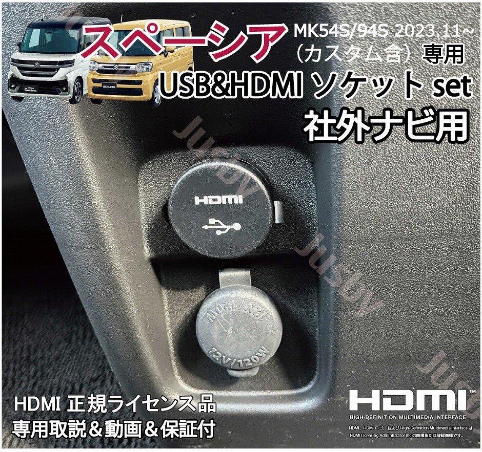 > 新型スペーシア MK54S/94S 社外ナビ用 USB/HDMIソケットset カーナビ HDMI入力 HDMIアダプタ ミラーリングに充電通信 HDMIアダプタ SPACIA