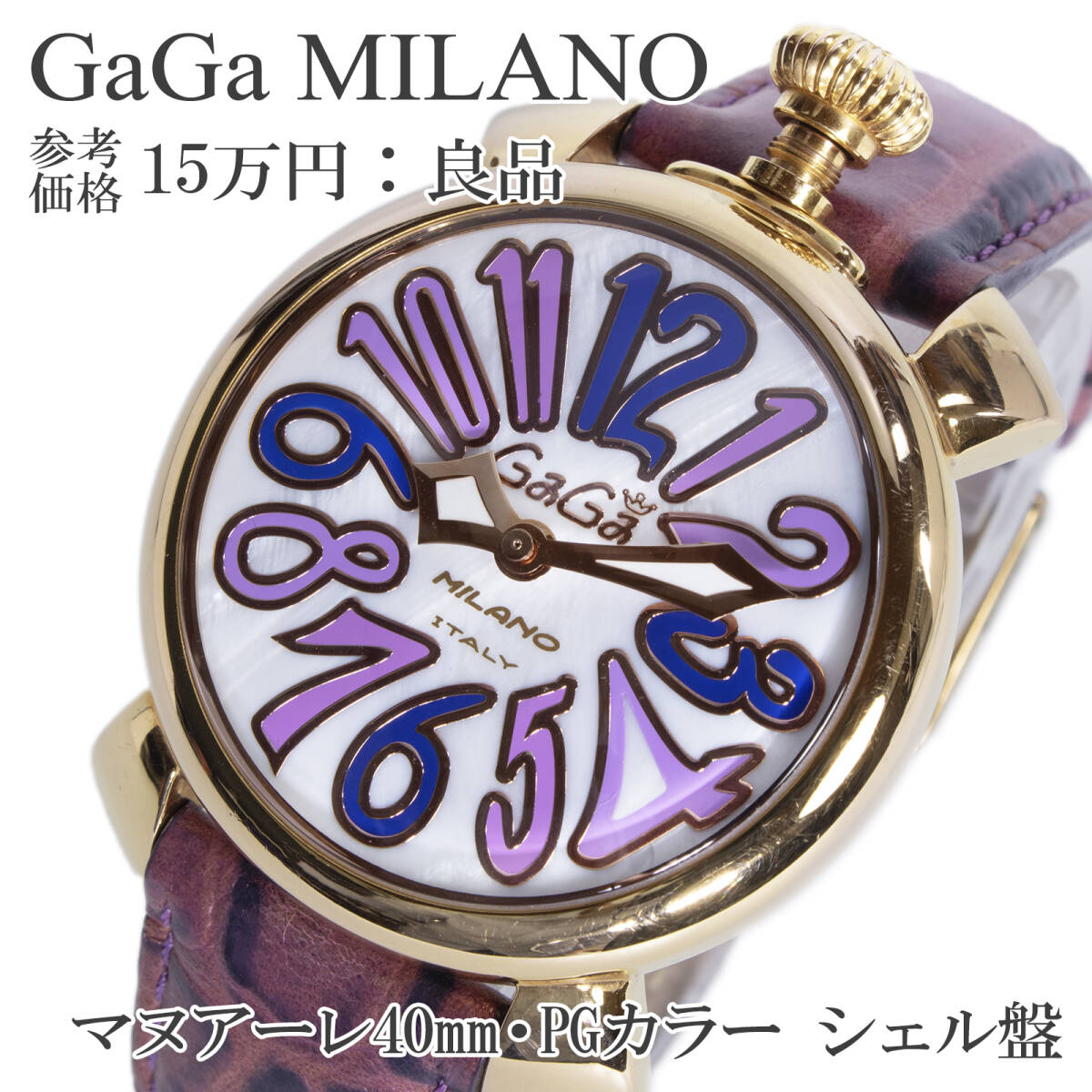 > 送料無料 ガガミラノ 腕時計 レディース マヌアーレ40mm 5021.4 白 紫 ネイビーブルー ピンクゴールド シェル盤 ロゴ ブランド 珍しい X355