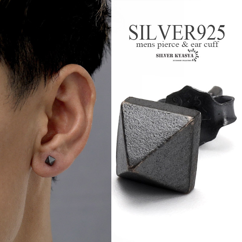 - シルバー925 スタッズピアス スタッドピアス 三角 四角 ブラック black ピラミッドピアス 金属アレルギー 対応 片耳用