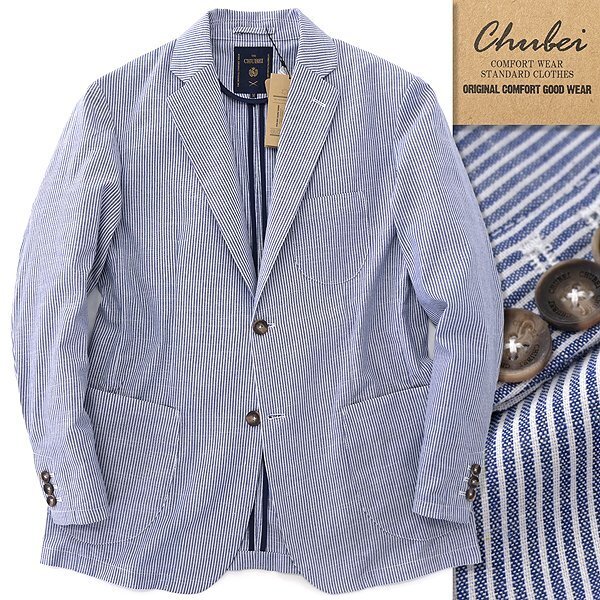 - 新品 チュウベイ 洗える コットン オックス ストライプ ジャケット LL 青 白 【CH1451082_77_LL】 春夏 CHUBEI オックスフォード