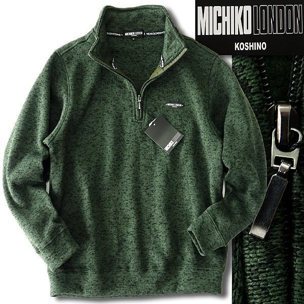 - 新品 ミチコロンドン 秋冬 メランジ ハーフジップ ニット フリース L カーキ 【3WML-R221M_GE_L】 MICHIKO LONDON プルオーバー カジュアル