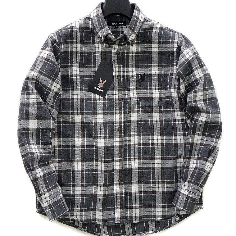 - 新品 プレイボーイ 起毛 ビエラ シャツ LL 茶 【44004_219_LL】 PLAYBOY メンズ 長袖 フランネル ネルシャツ ボタンダウン チェック