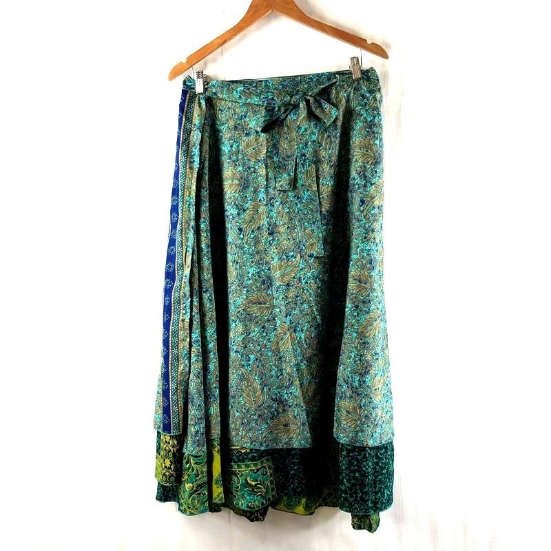 - スカート ラップスカート 柄模様 アフリカンプリント ミモレ丈 グリーン系 ブルー系 イエロー系 2025083100285