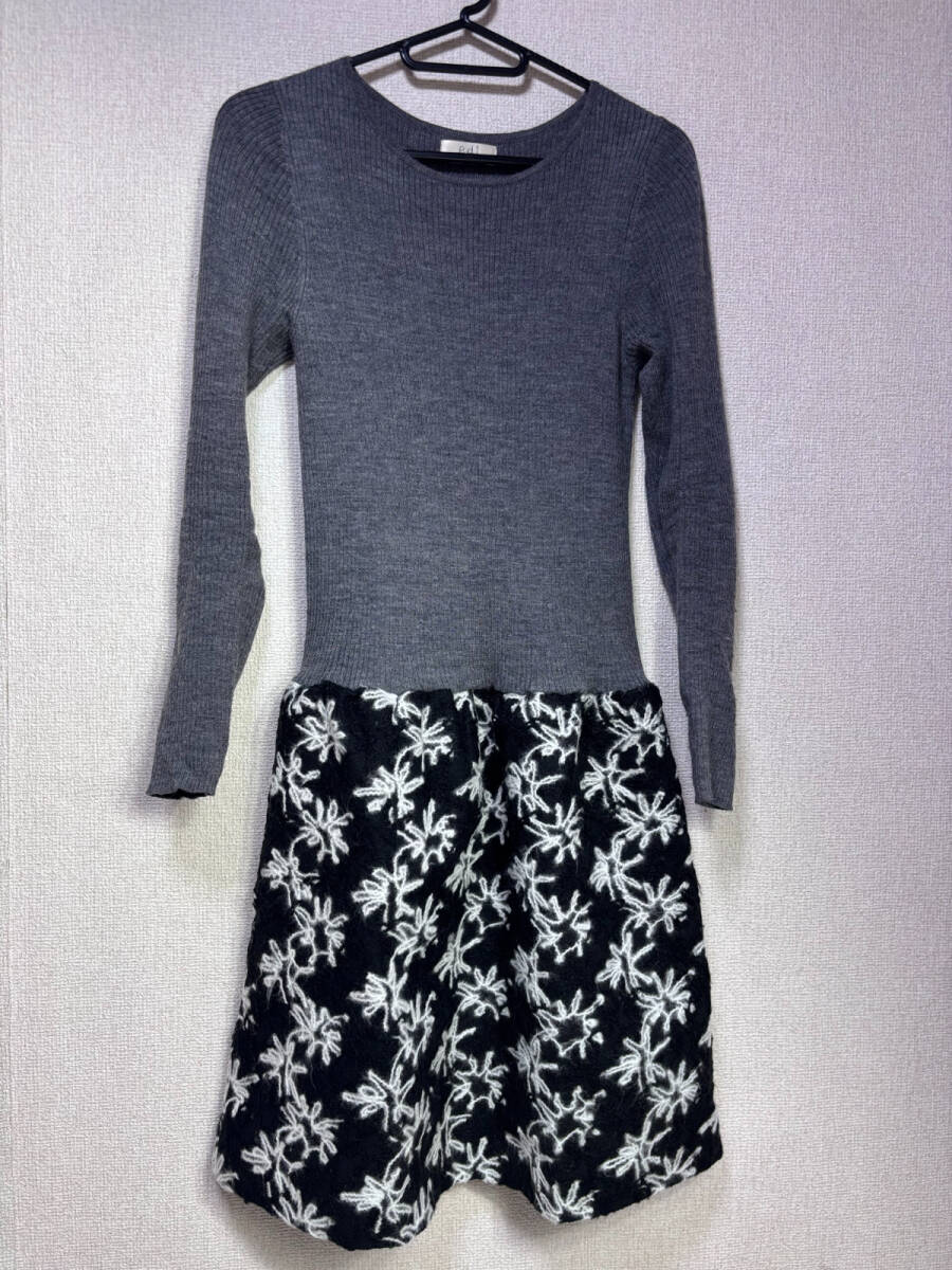 - d4813◆エンリコドマーニedi ENRICODOMANIウールリブニットワンピース40グレー×黒