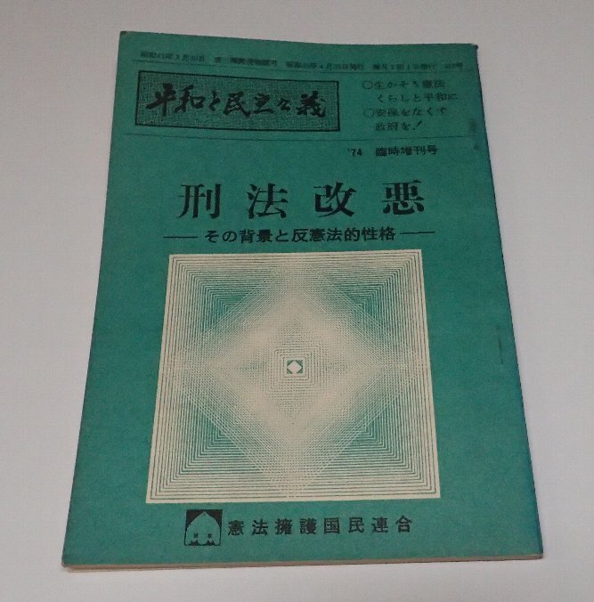 ●「刑法改悪 平和と民主主義 臨時増刊号 1975年4月25日」  その背景と反憲法的性格 憲法擁護国民連合