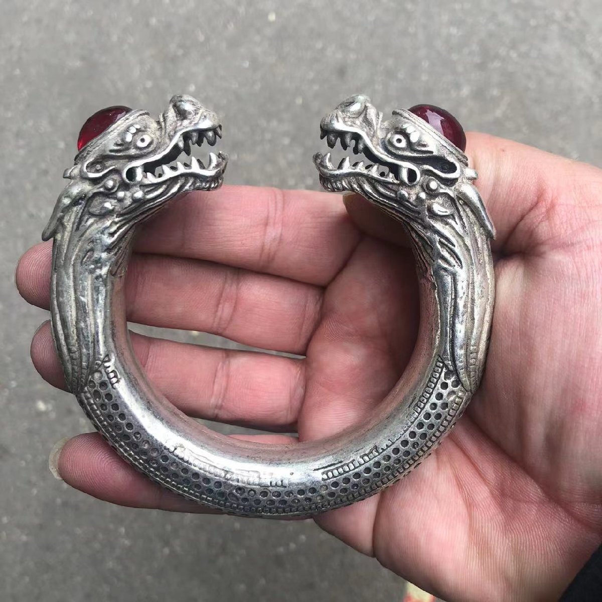 - 竜頭腕輪 腕輪 中国 金属 腕輪 透かし彫り 裝身具 護符 開運 風水 お守り 厄除け 装飾