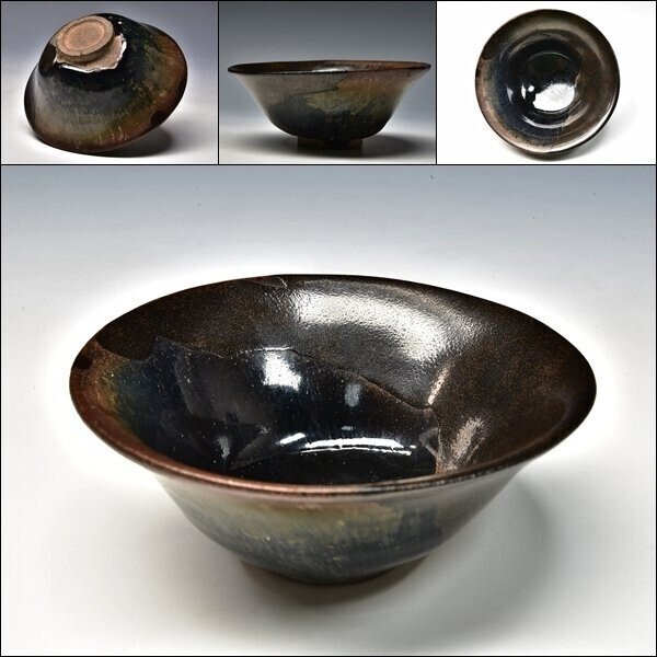 - YK00141 時代物 天目杯 漆直 窯変 曜変 天目 盃 杯 酒盃 酒器 茶器 建窯 伝来 /G292