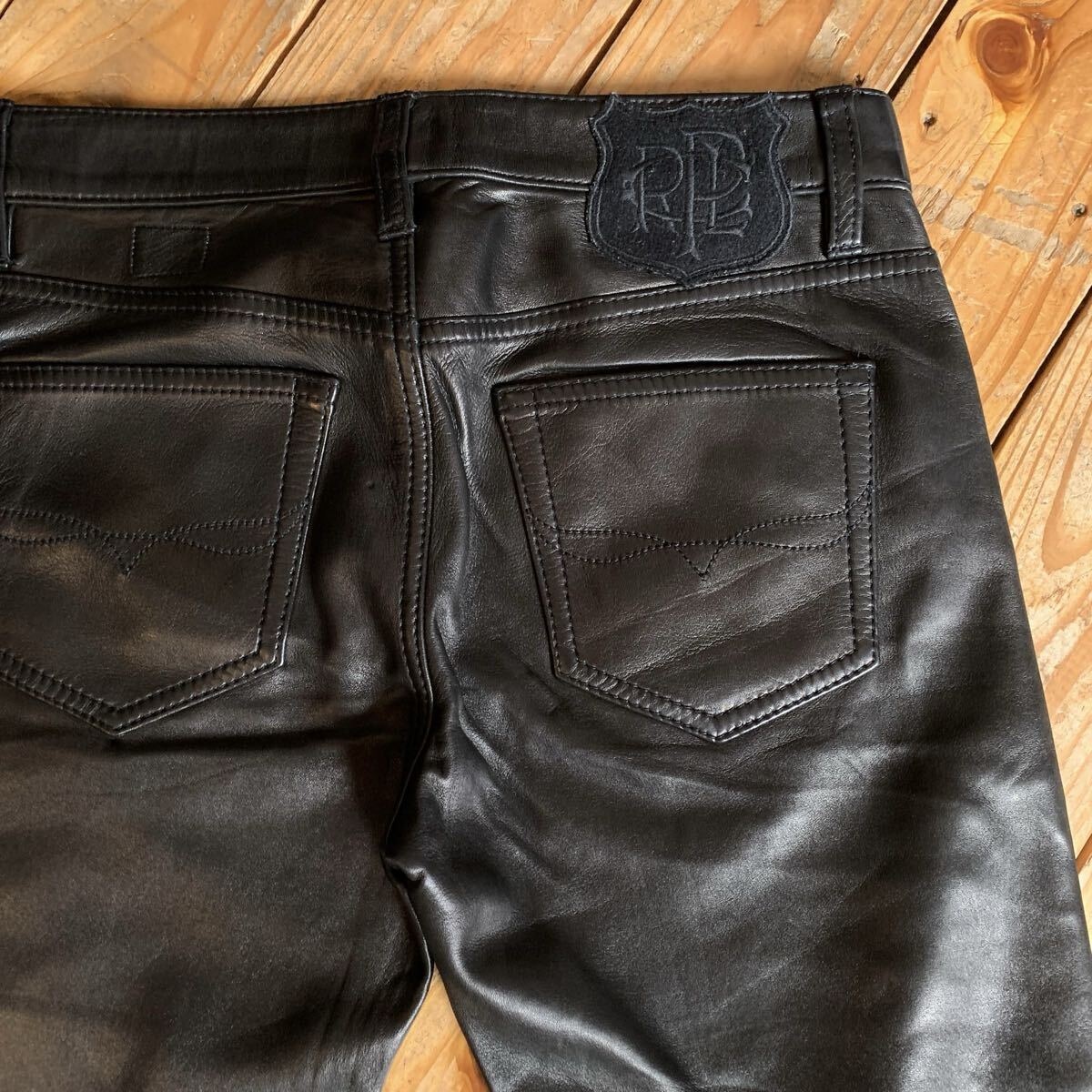 > USA古着 Ralph Lauren ラルフローレン レザーパンツ 本革 レディース 27サイズ ブラックストレート カジュアル バイカー P2014