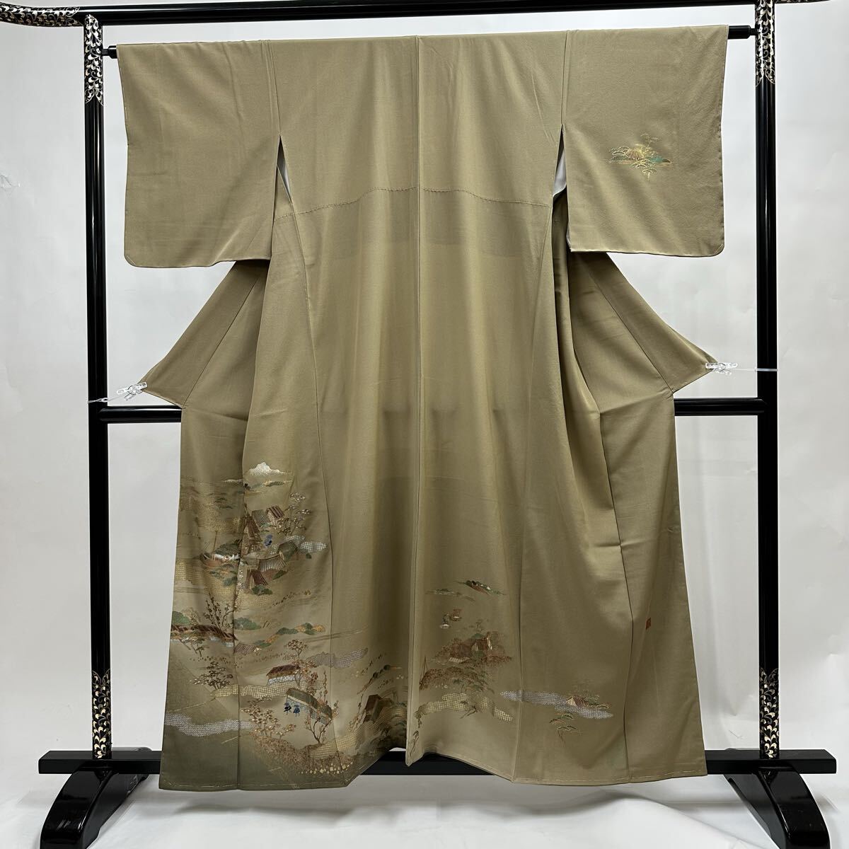 - 【七福】c903 訪問着 正絹 袷仕立て 落款 風景 金彩 落款 着物 逸品 身丈 約156cm 裄 約62.5cm