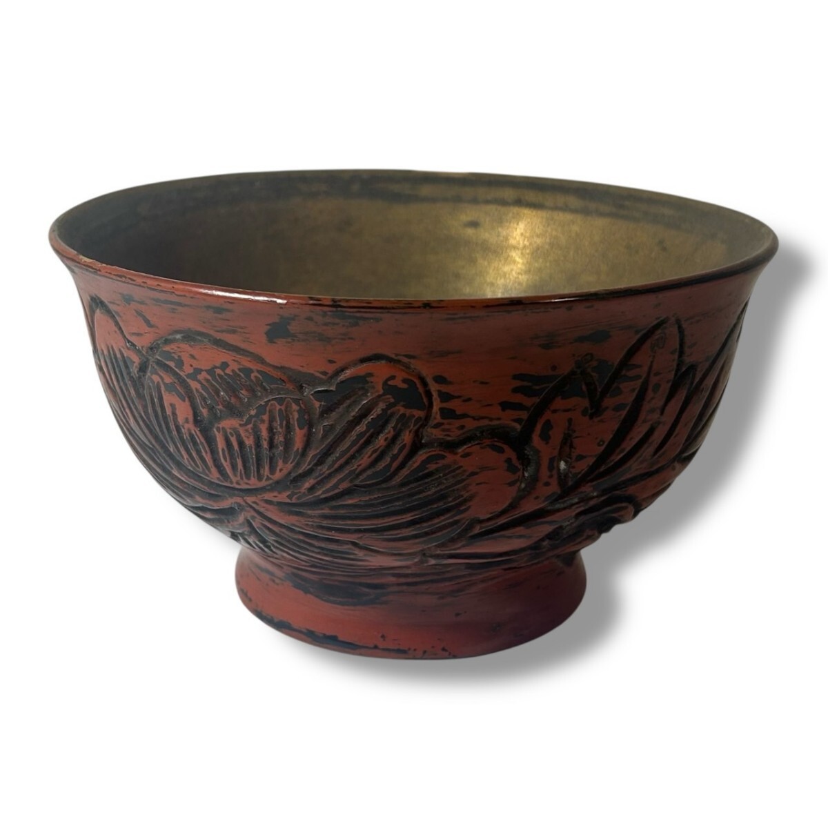 - 中国美術 漆器 茶碗 直径15cm高8cm重172g 飾皿 赤