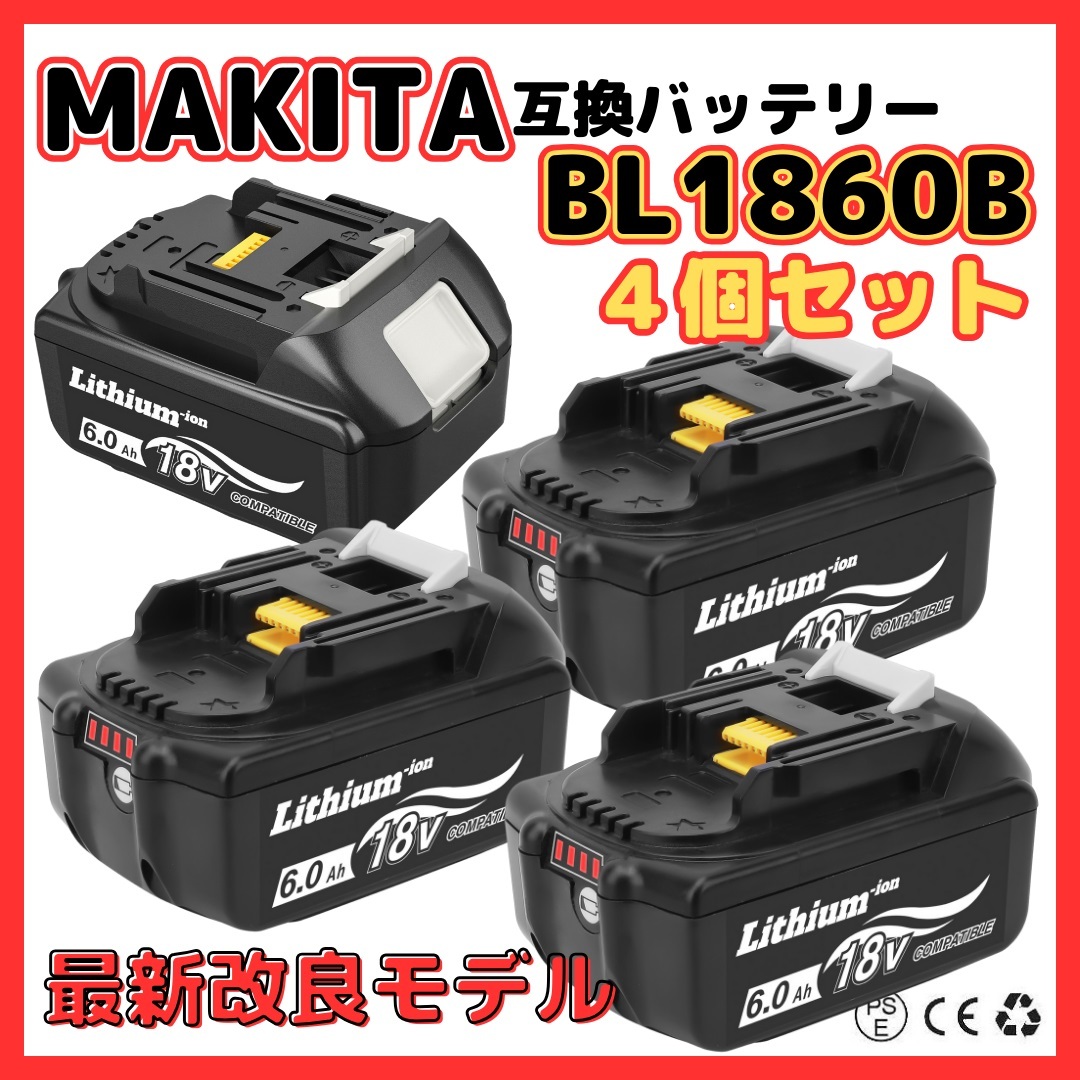 - (A) マキタ バッテリー 互換 BL1860B 4個セット 18v makita 6.0Ah DC18RC DC18RA DC18RF DC18RD BL1830 BL1830B BL1850 BL1860 BL1890B