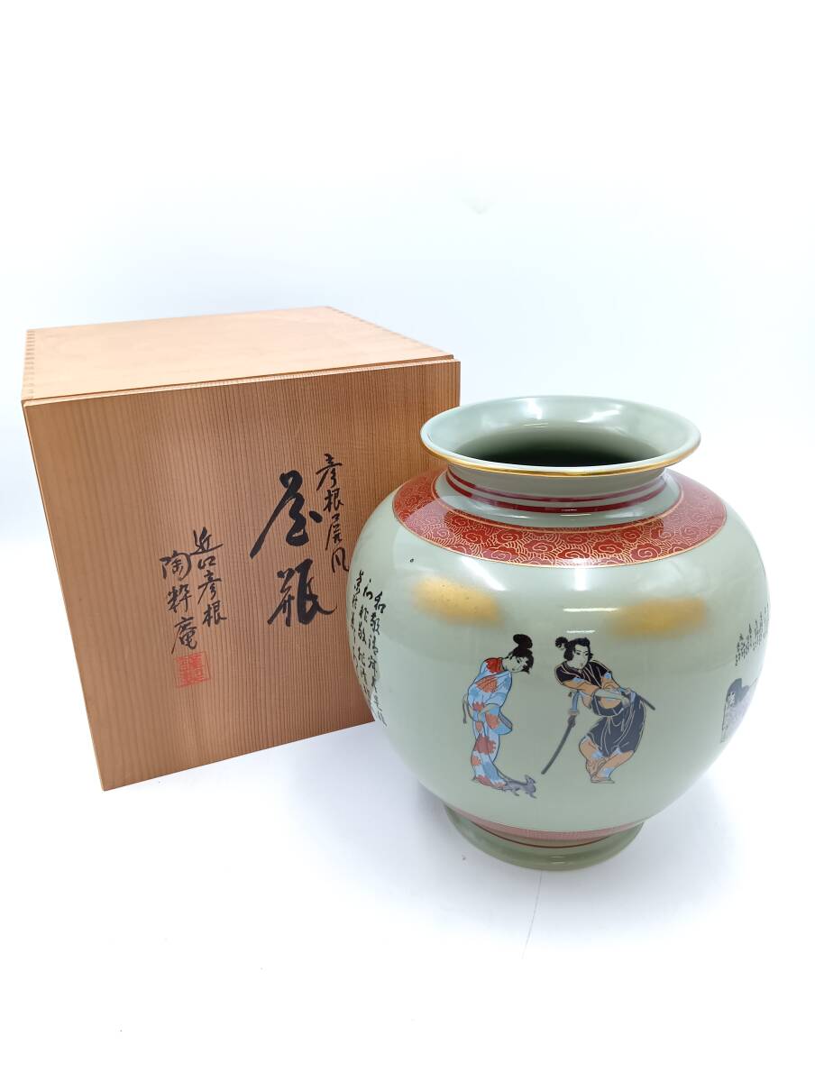 - 【OK彦】彦根屏風画陶器 花瓶 花器 近江彦根 陶粋庵 共箱 1円スタート