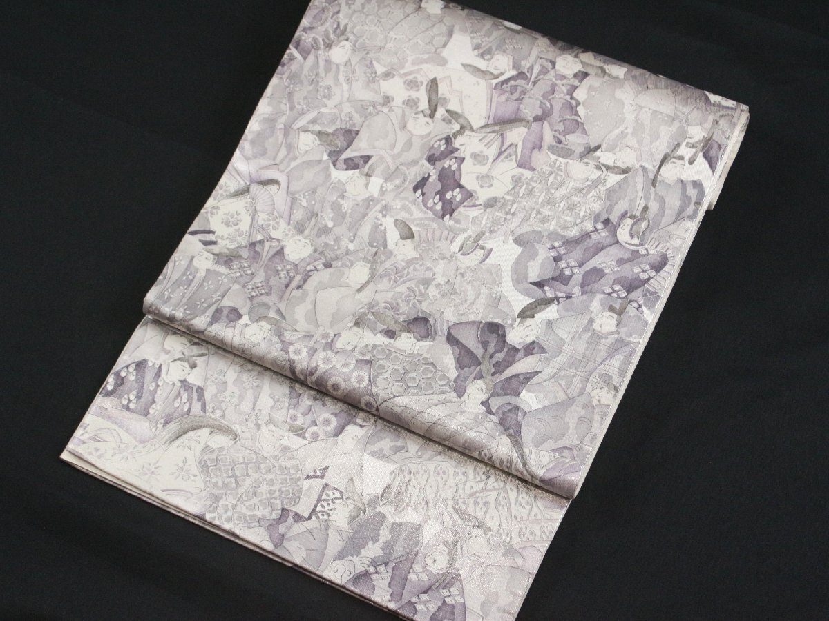 > 正絹袋帯 水墨画風『百歌人風平安人物図』 e-2261
