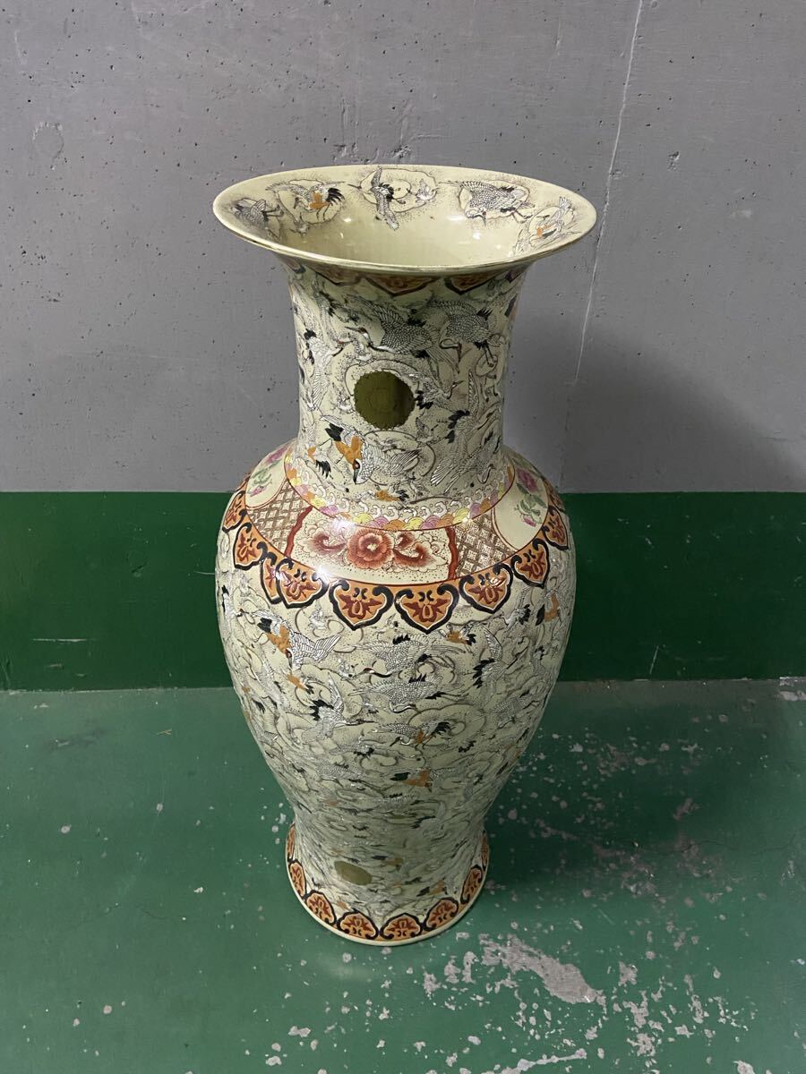- ★薩摩 薩摩焼 金襴手 群鶴雲図 大花瓶 飾壺 置物 古美術品 高さ91㎝★