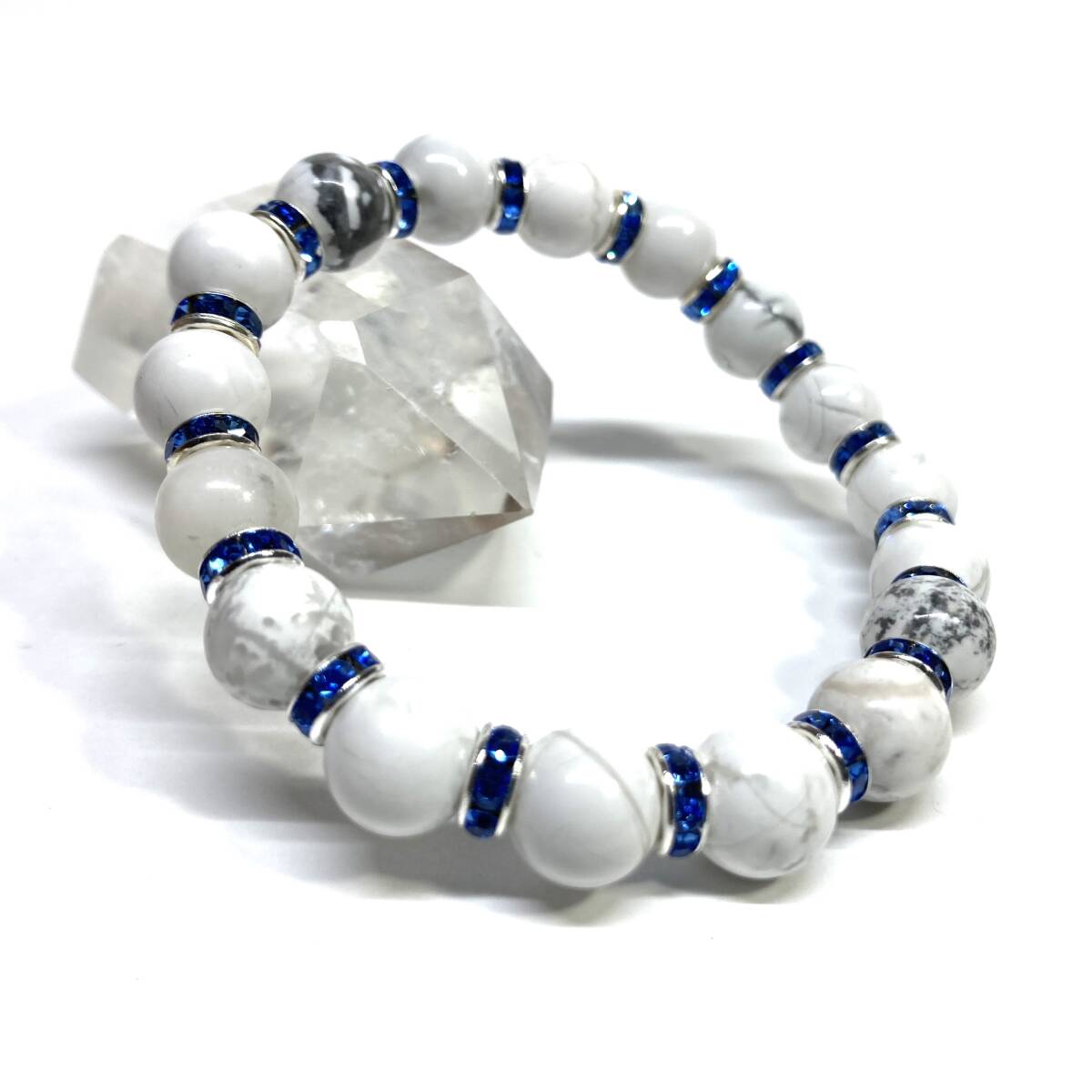 - ハウライト パワーストーン ブレスレット 天然石ブレス 8mm (ブルー) /開運 浄化 人間関係 健康 効果 レディース 通販 白
